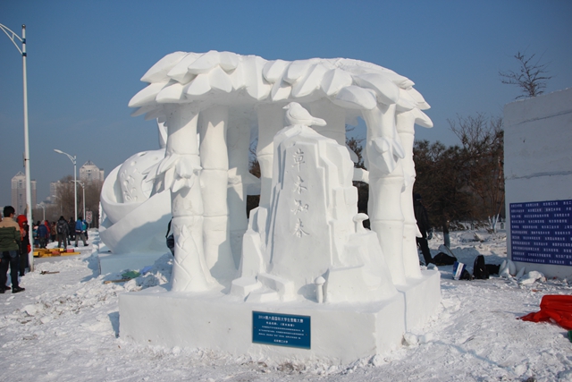 國際大學(xué)生雪雕大賽是黑龍江省高校冬季特色品牌文化活動(dòng),從2009年由哈爾濱工程大學(xué)發(fā)起并承辦每年舉辦一屆雪雕大賽,每次都有來自歐洲、亞洲等多個(gè)國家的代表隊(duì)前來參賽。目前為止,我校已經(jīng)連續(xù)參加了四屆雪雕大賽,曾獲得二等獎(jiǎng)的歷史最佳成績。