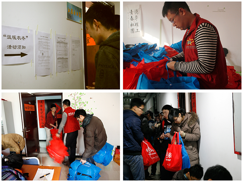 為積極響應團市委的號召,幫助青年大學生用實際行動“認識社會、回報社會”,積極倡導“隨手微公益,傳播正能量”理念,學校團委于2013年12月至2014年2月在全校范圍內開展了“溫暖衣冬——為最需要的人送去溫暖”活動。