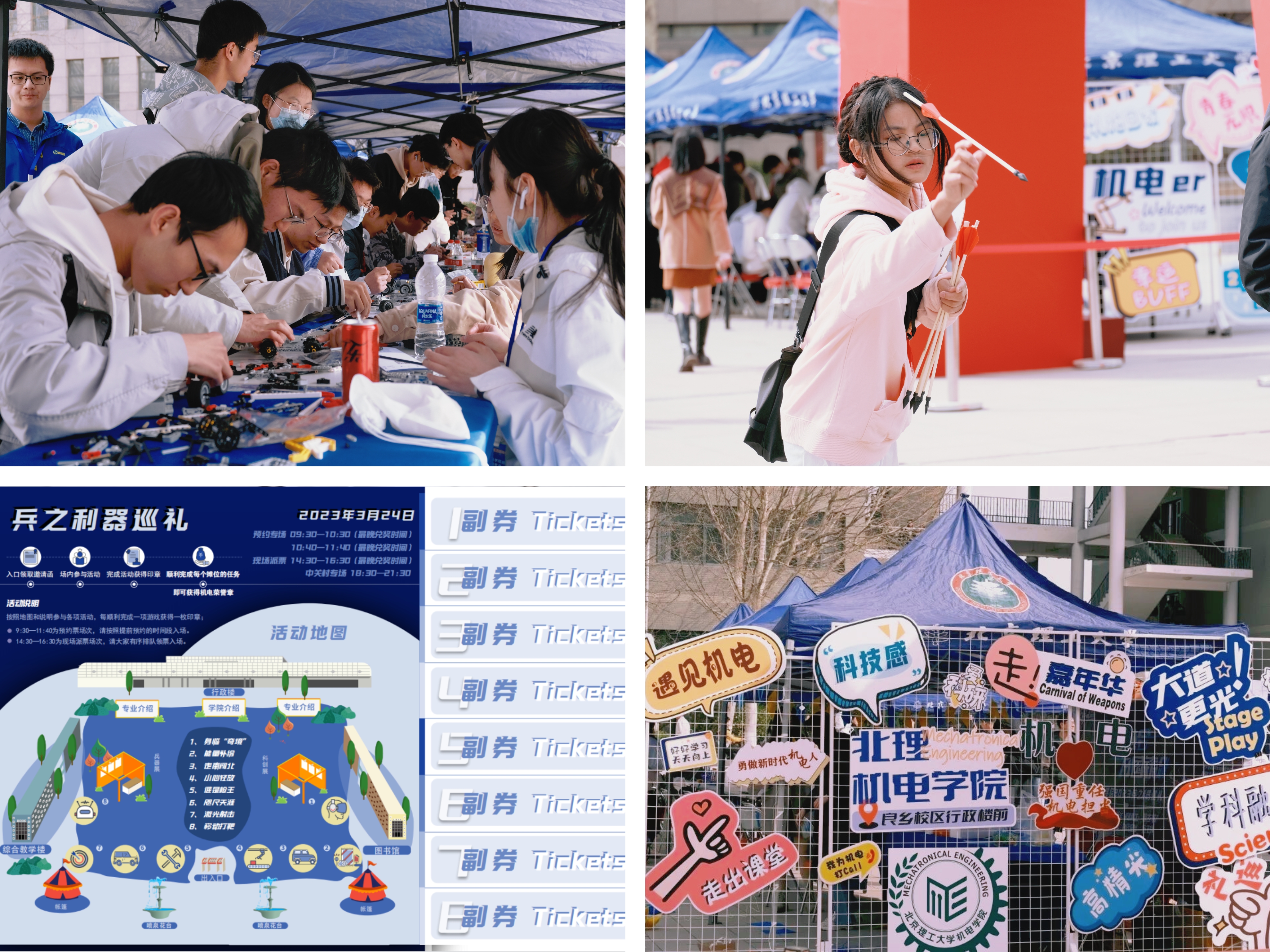 “操控著小車走迷宮的時候一瞬間好像回到了小時候,那種不達目的不罷休的好勝心不自覺地就冒出來了”“竟然還有激光打靶的體驗,比網絡游戲里的打槍刺激真實多了!”VR頭盔下的獨特視野,讓參與者擁有全新的沉浸式體驗,來自精工書院2022級的胡征卓同學在激烈的游戲比拼結束后仍意猶未盡,被問到活動體驗如何時,他說:“切身感受到了什么叫身臨‘奇’境,體驗感爆棚!”這是北京理工大學機電學院“兵之利器”學院巡禮——兵器嘉年華的活動現場。