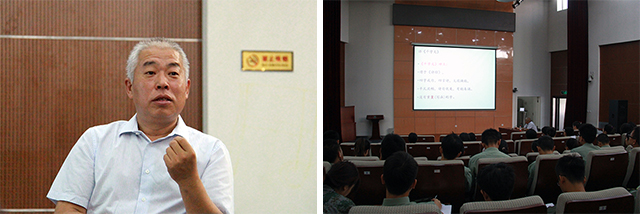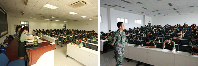 軍事理論培訓分為軍事理論課講授和觀看軍事紀錄片兩部分,充分調動學員積極性,打實國防知識基礎,強化學員國防安全意識,提高學員思想覺悟。軍事理論課由國防大學教授主講,分為十講授課,內容包括中國周邊安全環境、信息化戰爭、美國軍事戰略、外國軍事思想、中國武裝力量、軍事高技術概述、中國國防、中國古代軍事思想、毛澤東軍事思想和鄧小平新時期軍隊建設思想等。主講教授講解細致、語言生動,旁征博引、深入淺出,為學員系統全面地講授國防知識。參訓學員虛心學習、認真記錄,積極與教授互動,課堂氣氛和諧融洽。軍事紀錄片共分兩天放映,分別為《軍工記憶》之“水下長征”、“金戈鐵馬”、“豹嘯長空”和“東風破曉”四部分,較為全面地介紹了我國軍工歷史和裝備發展。裝備研發背后的故事可歌可泣、催人奮進,在引領學員了解我國軍工發展歷程的同時,增強學員國防意識,激發學員的忠黨愛國情懷。