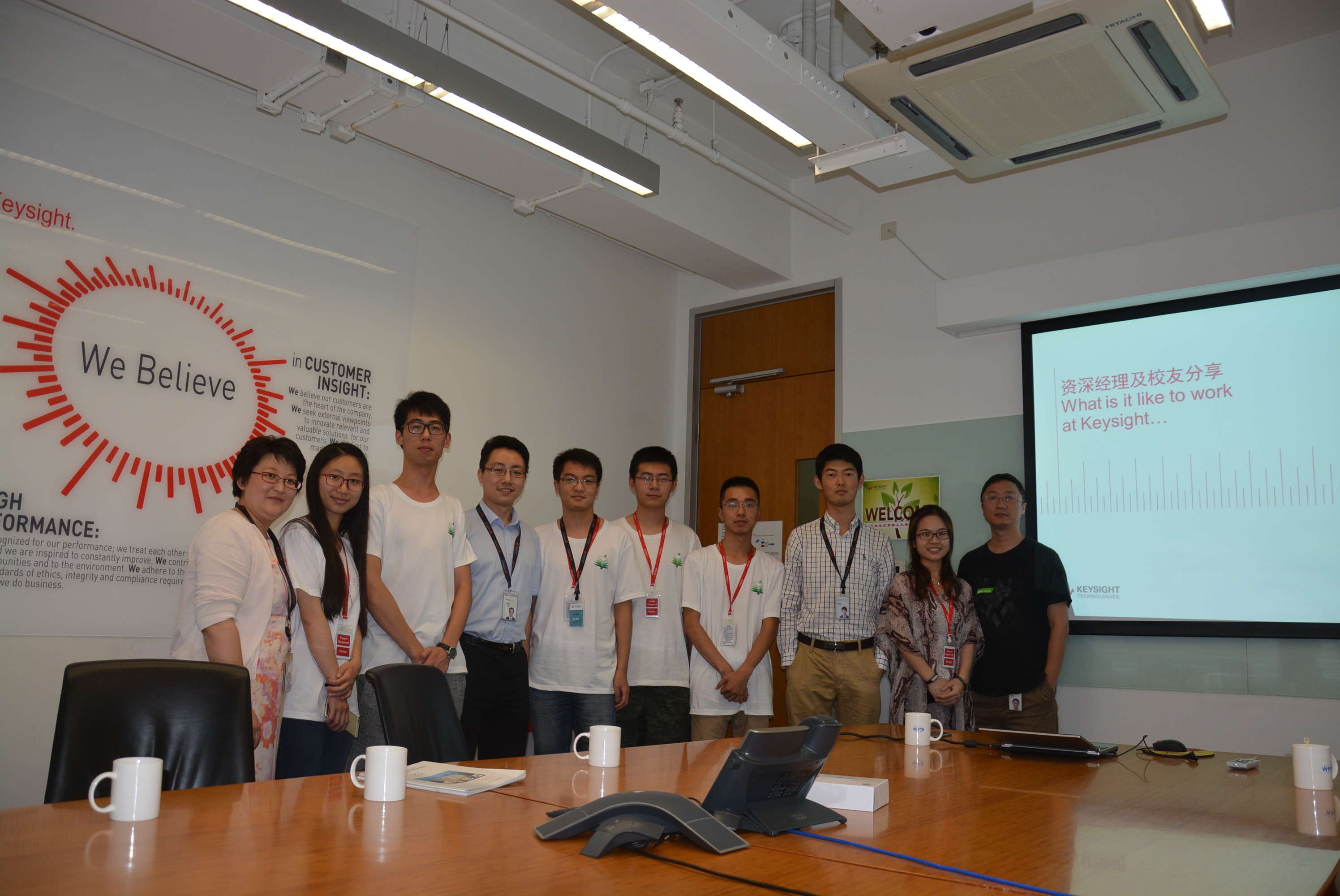 最后,公司的資深經理和校友們與同學們展開了親切交流。是德科技實驗室中國區研發經理孔紅偉向大家講解了公司的科研模式,與同學們分析了在公司里搞科研與在學校的區別。2006屆博士校友王錚跟大家一起分享了自己的工作經歷,并給予同學們不少中肯的建議。2013屆碩士校友張誠跟同學們介紹了自己選擇是德科技的理由以及在銷售部的工作情況。2015屆碩士程亞冰向同學們講述了自己經過重重選拔加入是德科技的過程。關于同學們關心的企業面試中需要注意的問題,經理們告訴大家,不同部門及不同崗位有不同的就職要求,面試側重點會有所區別。例如,研發部門就會非常注重面試者的理論知識和過往的項目經驗;而市場和銷售部門除了看重面試者對專業知識的了解和掌握,同時還強調語言表達能力和解決問題的能力。前輩們中肯的職業規劃建議讓大家受益匪淺。