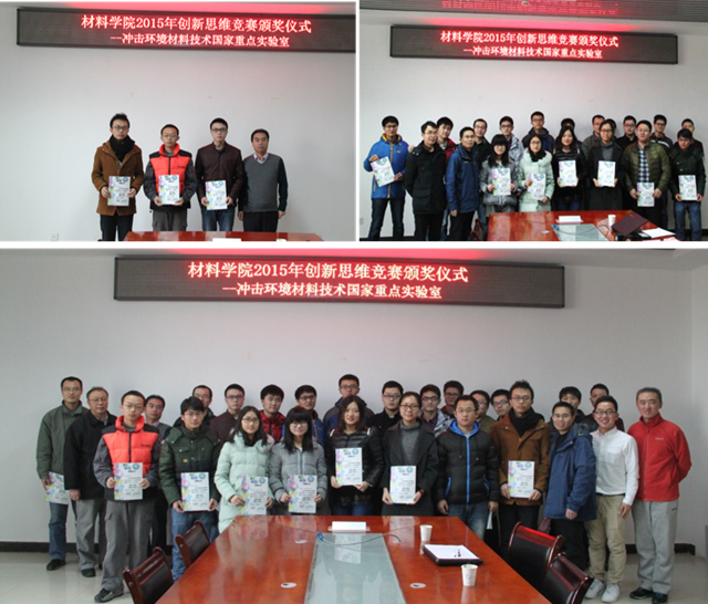 隨后,頒發了2015年度創新思維競賽獎學金。該獎學金是由材料學院沖擊材料環境技術國家重點實驗室設立的獎學金,用來獎勵從事沖擊材料環境技術領域的優秀學生。