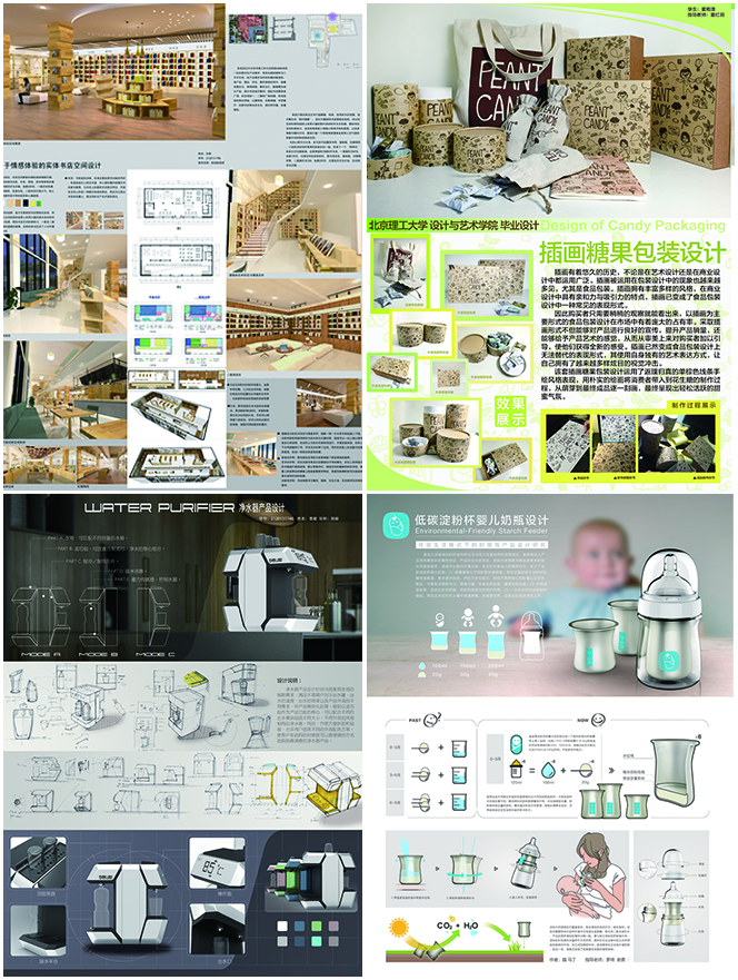 2016年3月23日至4月1日,北京理工大學設計與藝術學院在中心教學樓一層大廳舉辦了2016屆春季設計學碩士畢業設計作品展 ,展覽匯集了工業設計、視覺傳達、環境藝術、文化遺產、傳統工藝等專業共計六十余件作品,從家電產品、交通工具、家具家居、交互產品與服務、城市規劃與建筑設計及傳統工藝等作品。其展示了畢業生們對未來社會形態和生活方式的諸多思考與判斷,體現了從功能實用到藝術情感體驗、從二維、三維到虛擬交互與服務模式的多元特色。展覽期間,吸引了眾多師生前來參觀。每個作品都展示著每一位設計學子的設計思想和理念,匯集著他們近三年的學習成果。