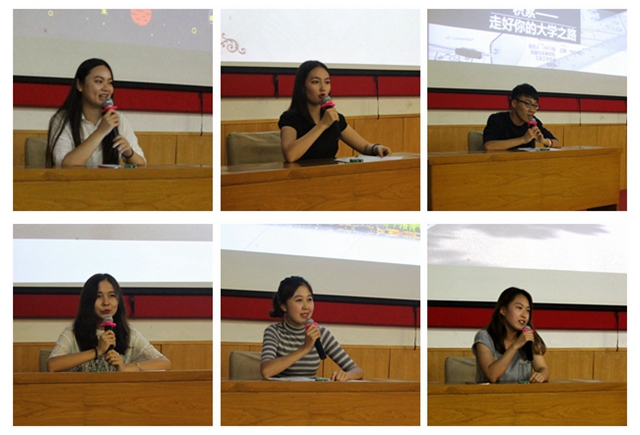 6名優秀少數民族學生由各學院選拔推薦,利用暑期準備了報告內容,他們從不同的角度與新生分享了自己在預科期間和大學期間的收獲與感悟,引導新生樹立目標、合理利用時間。