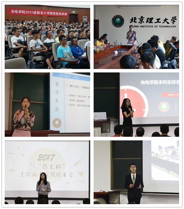 2017年9月11日至17日,光電學院開展了2017級本科新生入學教育系列活動。主要邀請學校相關部門領導、學院領導、班主任老師等開展專題講座和相關工作介紹,組織學院社團組織負責人開展宣講和經驗分享等。