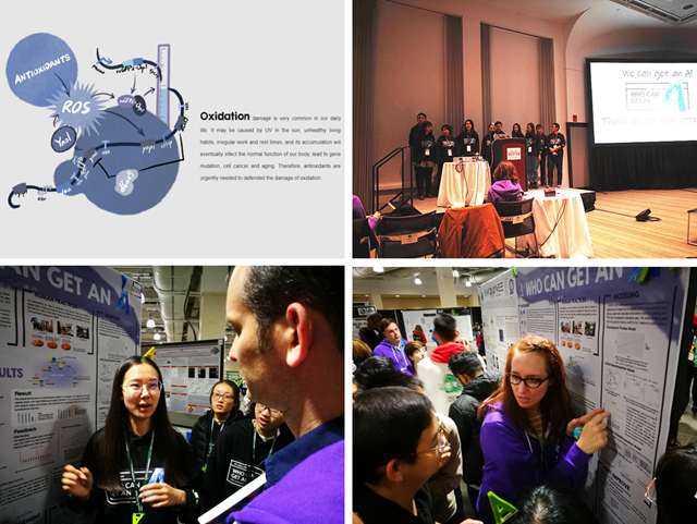 10個月里,為了達到iGEM金獎標準,隊員們進行頭腦風暴,選定項目,查閱文獻,設計實驗、數學建模,美工設計,構建基因線路,進行社會實踐,搭建wiki網站,驗證整個項目,并最終在波士頓海恩斯會議中心(Hynes Convention Center) 以網站(wiki)、演講(presentation)、海報(poster)的形式展示了項目,與評委交流并接受質詢,最終獲得iGEM評委會的一致認可。