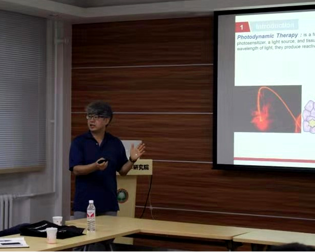 在講座中,Kim教授首先風趣的向在場所有師生介紹了韓國的風土人情,引發了陣陣笑聲;隨后由淺至深,向學生提出“現在非靶向藥用于癌癥治療有什么缺點?“的問題,逐步引導學生進入到他的研究領域中來。