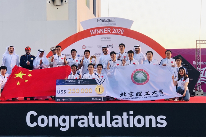北京時間2020年2月25日晚,北京理工大學“飛鷹”隊在阿聯酋阿布扎比舉辦的穆罕默德?本?扎耶德國際挑戰賽(MBZIRC2020)上,...