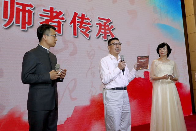 韓伯棠在2019年榮休儀式上向新入職教師贈(zèng)書(shū)